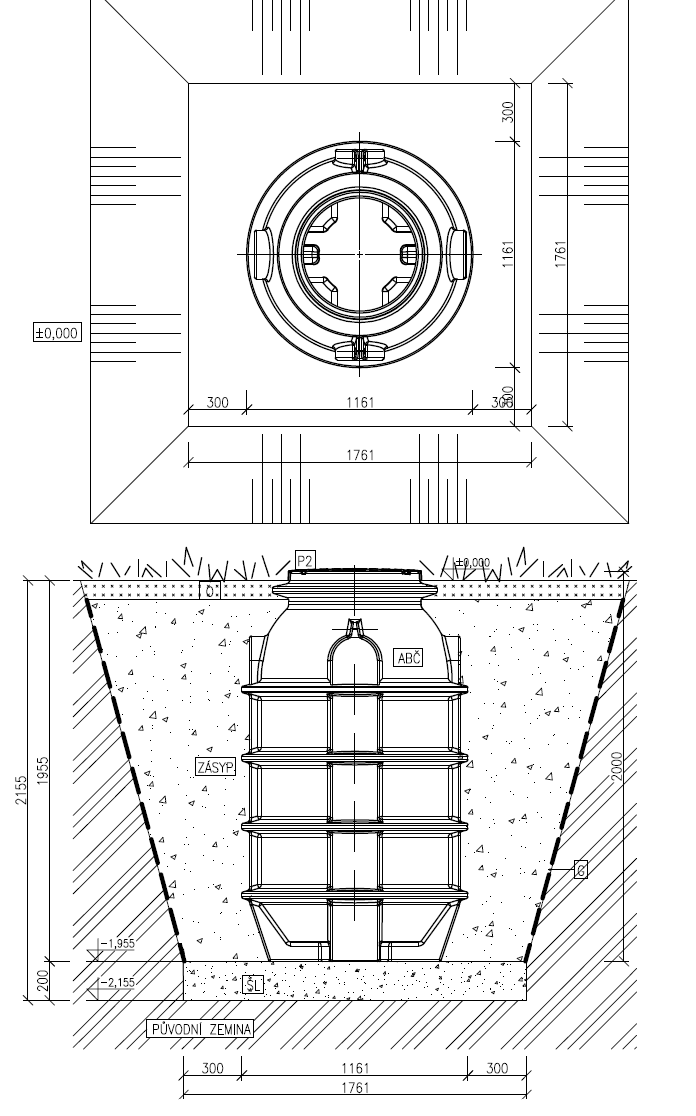 Doporučení: V případě výskytu spodní vody nebo zvýšeného statického zatížení vám doporučujeme výběr šachty konzultovat s vaším projektantem.