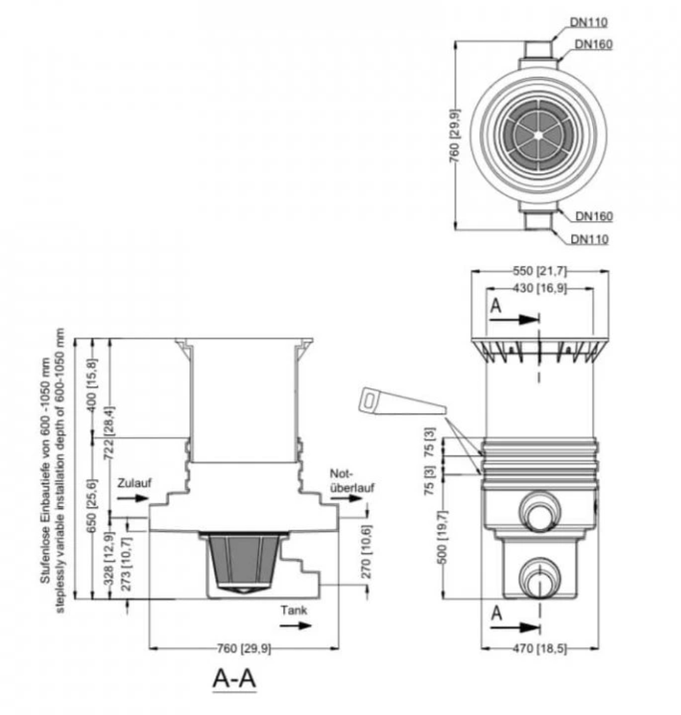 Filtrační šachta GRAF DN 400 s vyjímatelným košem