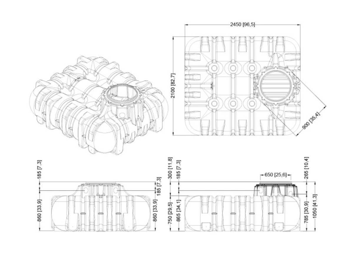 Nádrž má unikátní robusní konstrukci a systém sloupků, který zajišťuje dokonalé statické vlastnosti. Díky malé výšce jsou nádrže vhodné míst se skalnatým podložím, podzemní vodou, inženýrskými sítěmi atd.
