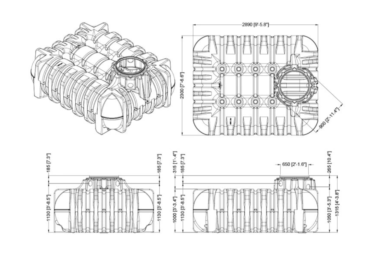 Nádrž má unikátní robusní konstrukci a systém sloupků, který zajišťuje dokonalé statické vlastnosti. Díky malé výšce jsou nádrže vhodné míst se skalnatým podložím, podzemní vodou, inženýrskými sítěmi atd.