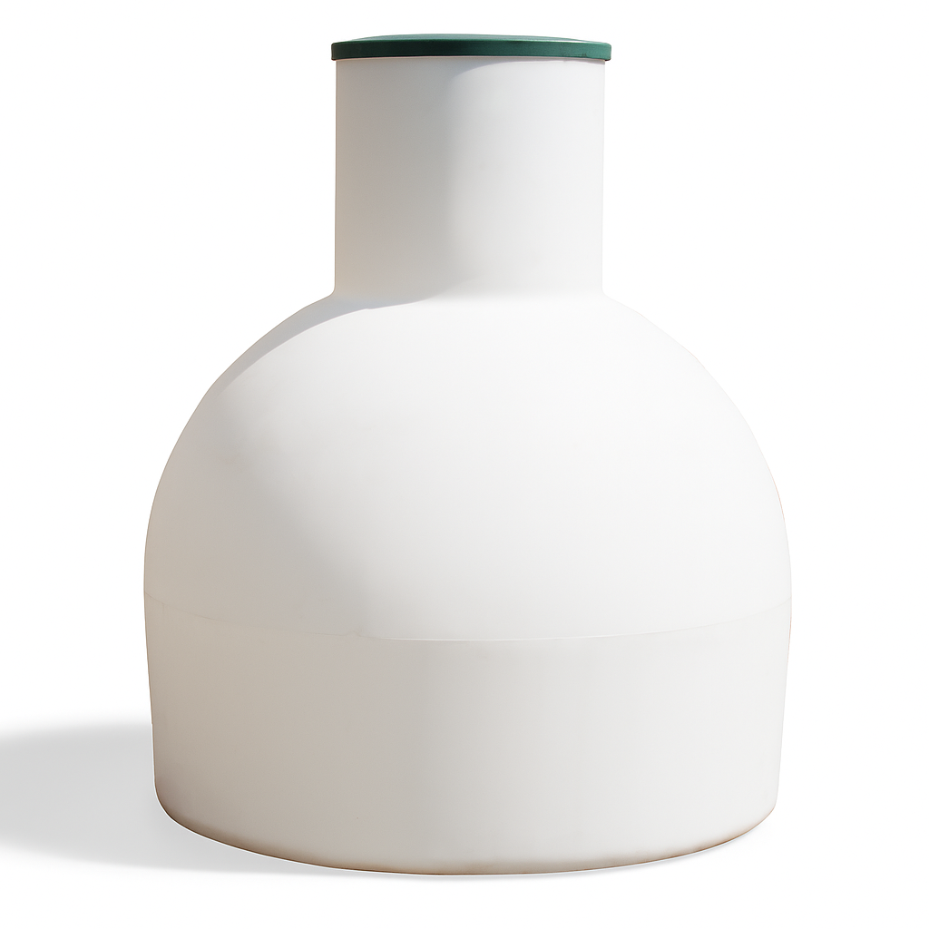 Vertikální podzemní nádrž vyrobená z prvotřídního polyetylénu (zcela bez příměsi recyklátu) technologií rotačního odlévání. Díky tomu má tato nádrž opravdu garantovánu samonosnost.