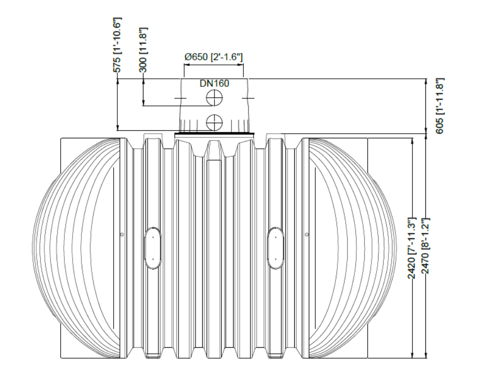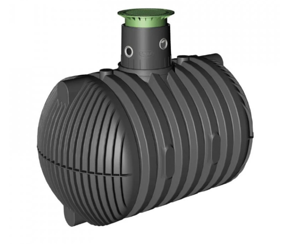Podzemní odlévaná nádrž na dešťovou vodu Columbus 10.000 l , včetně doplňkového příslušenství - revizní komínek a teleskopický poklop.