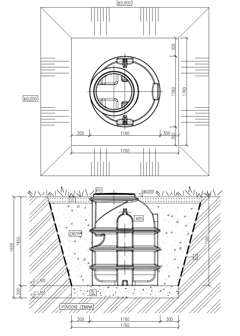 Konstrukce šachty je zcela samonosná a nevyžaduje žádné betonování. Stačí pouze usazení na zhutněný podklad a obsyp tříděnou zeminou (bez ostrých kamenů a jiných předmětů). Díky tomu se výrazně sníží stavební náklady.