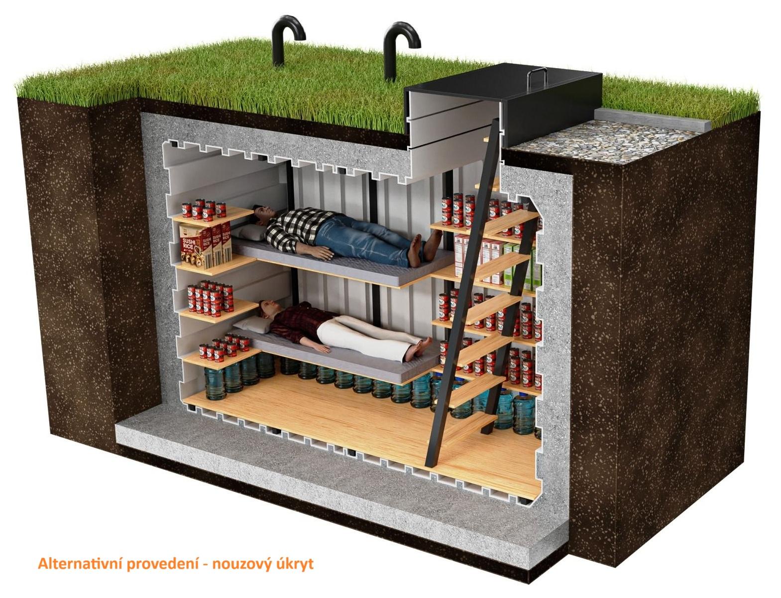 Nouzový kryt a úkryt v krizových situacích - díky 100% vodotěsnosti v nich můžete dlouhodobě uchovávat trvanlivé potraviny, léky, vodu a vybavení, aniž by hrozilo jejich znehodnocení vlhkostí. Sklep lze v zahradě instalovat velmi nenápadně. Po zasypání a zatravnění může být vstup maskován (např. v podlaze kůlny nebo pod falešným záhonem).